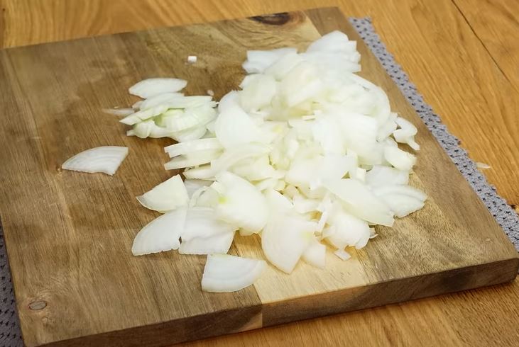 We take two medium onions, finely chop and fry a little in a frying pan in sunflower oil.