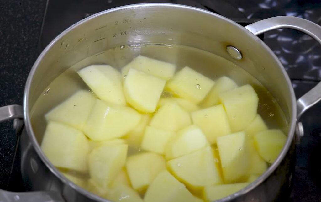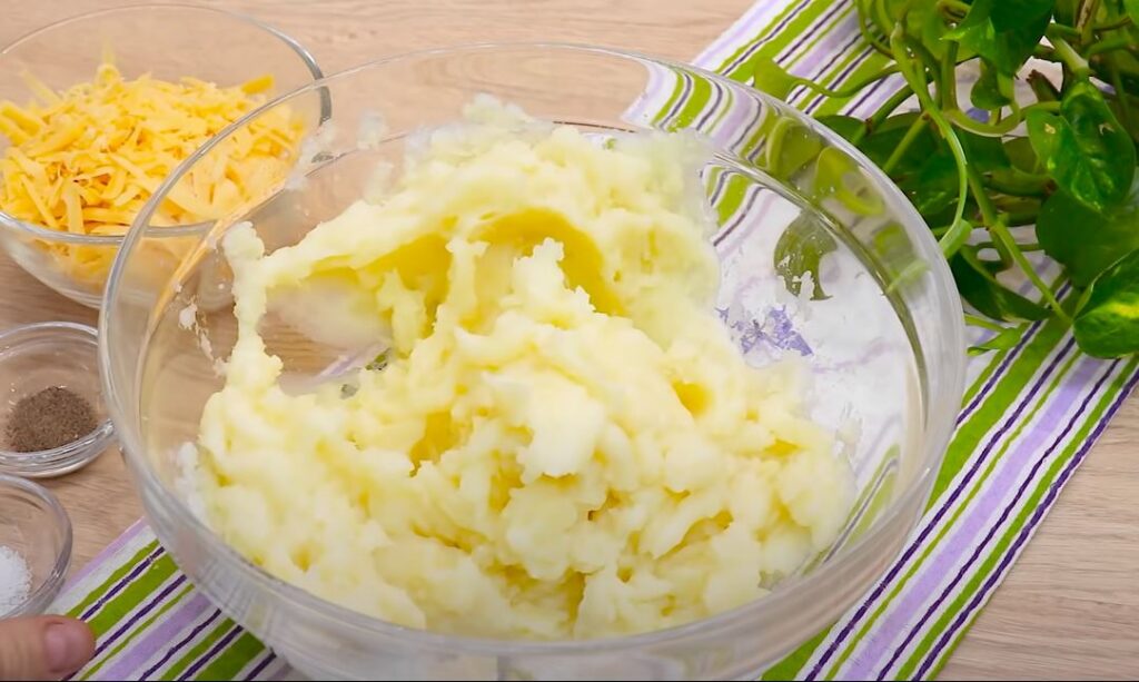 Mash potatoes and add half a teaspoon of salt and black pepper (4 grams each).