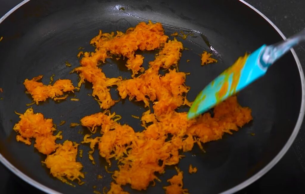 Butter in a frying pan. A pinch of salt. Slightly fry the carrots.
