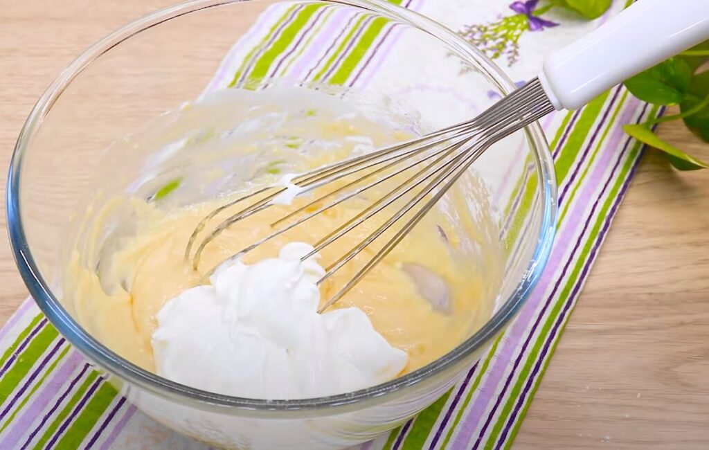 Dough: 2 eggs. 1/2 teaspoon salt (4 grams). 4 tablespoons of flour (80 grams). 1/2 teaspoon baking powder. 2 tablespoons of yogurt (100 grams).